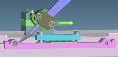 CAD view of the cutting fixture used to assess blade cut performance and optimal blade design